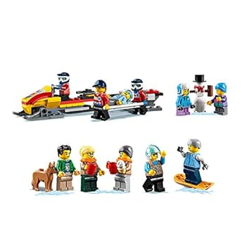 👉Enthält 11 LEGO City Minifiguren: 3 Mitglieder der Skipatrouille, einen Ski-Shop-Verkäufer, einen Hubschrauberpiloten, einen Skiläufer, einen Snowboarder, 2 Kinder, einen Getränkeverkäufer und mehr